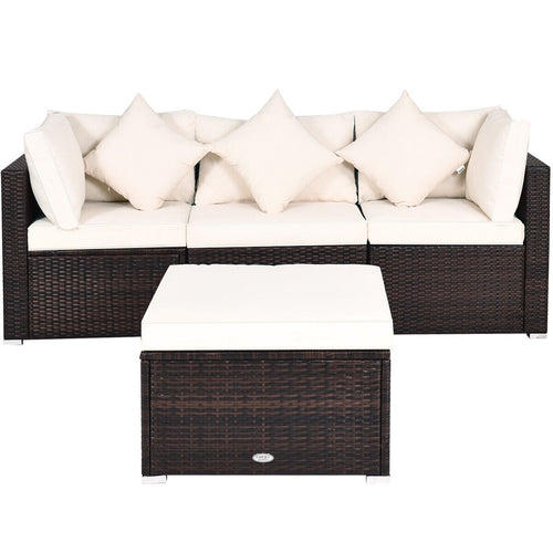4 PCS Rattan Patio Conversation Set Outdoor Furniture Sofa Set w/ Coffee Table