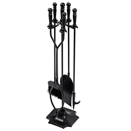 5 Piece Fire Companion Set Iron Fireplace Fireside Tools Brush Poker Tong Shovel