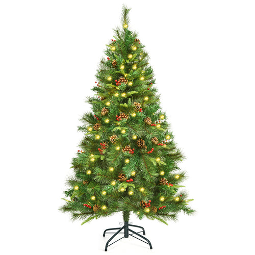 5FT Artificial Christmas Tree Pre-lit Green Pine Xmas Tree Decor W/ Red Berries