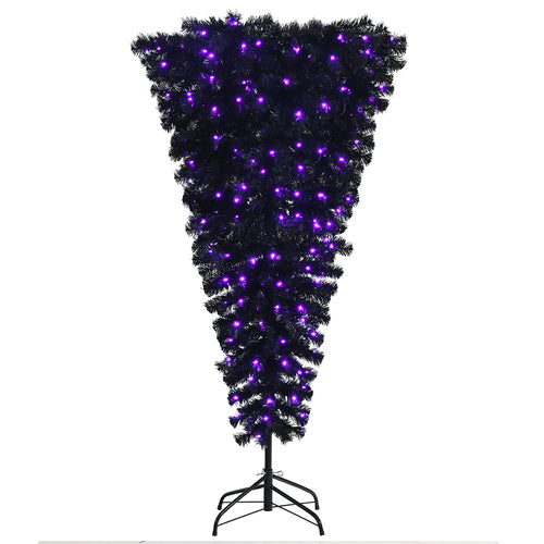 5FT Christmas Tree Upside Down Black Artificial Xmas Tree W/ 200 LED Lights