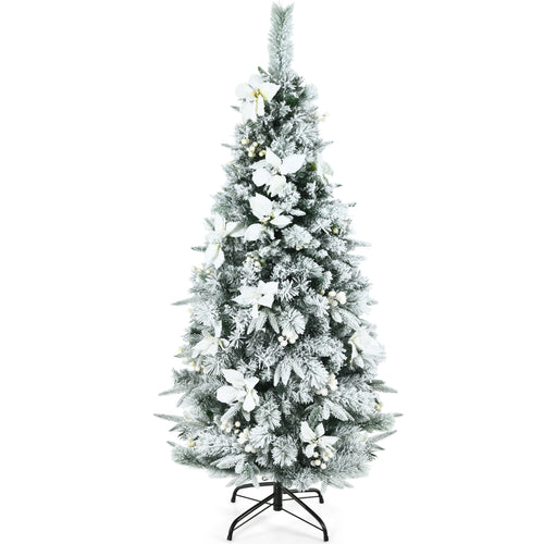 5FT Slim Pencil Tree Hinged Artificial Christmas Tree Snow Flocked Xmas Tree