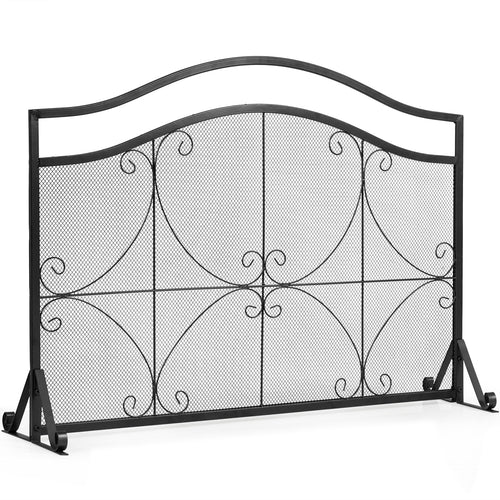 Fire Guard, Decorative Spark Flame Barrier with Metal Mesh and Stable Stand, Iron Fireplace