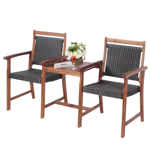 Garden Acacia Wood Companion Bench 3-Piece Patio Hardwood Loveseat Chair with Coffee Table