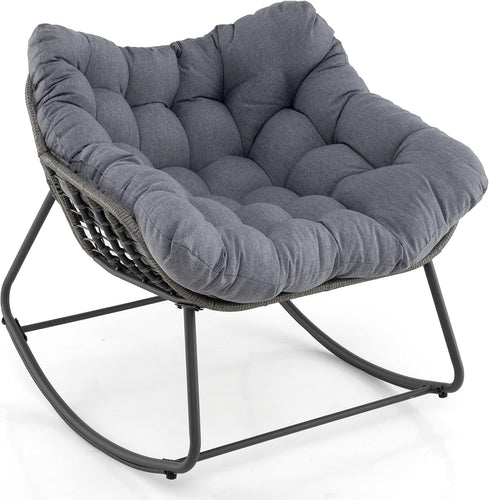 Outdoor Rocking Chair with Thick and Removable Cushion