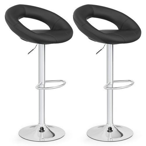 Swivel Height Adjustable Bar Stool Set of 2 with Hollow Back and Footrest