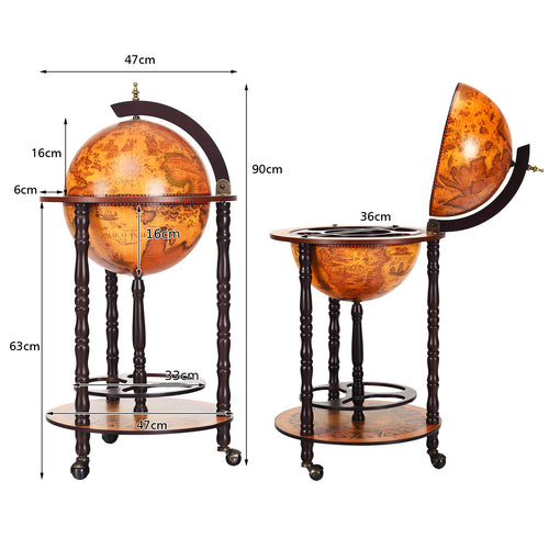 Wood Globe Drink Cabinet Wine Bar Stand Italian Rack Liquor Bottle Shelf 330MM