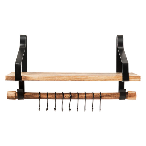 Wall-Mounted Floating Shelves Wood Storage Display Rack Hanging Shelf w/ Hooks