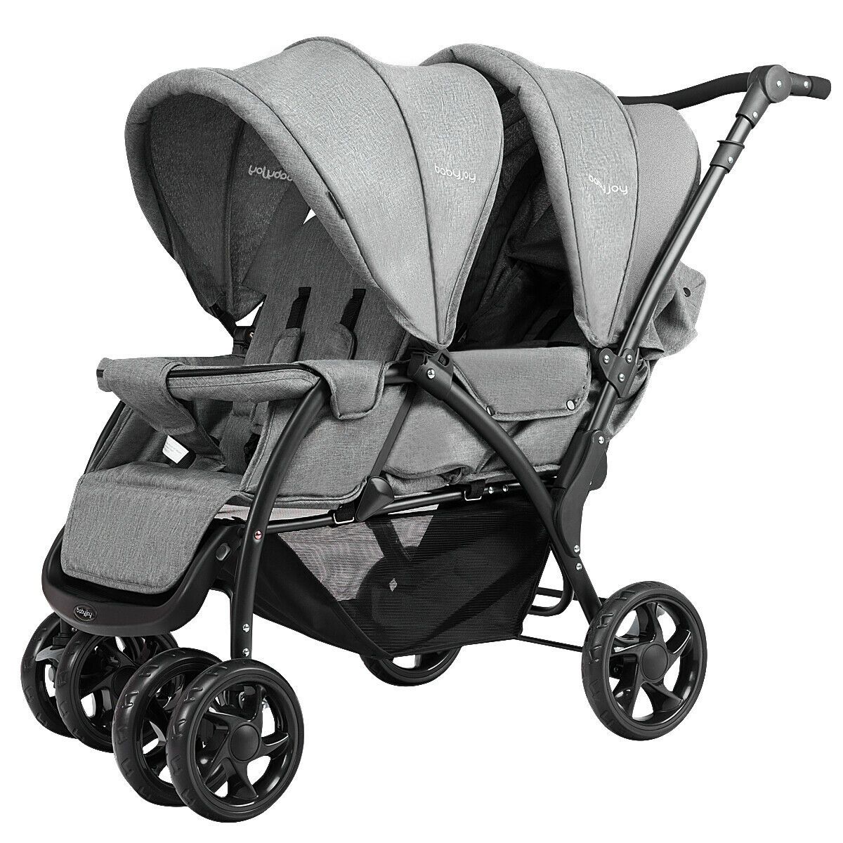 With a strong, heavy-duty metal frame, the double pushchair provides reliability for long term use. The handle and footrest are adjustable, and the pushchair folds for storage or transport. If you are looking for a baby stroller such as this, don't hesitate to order now!